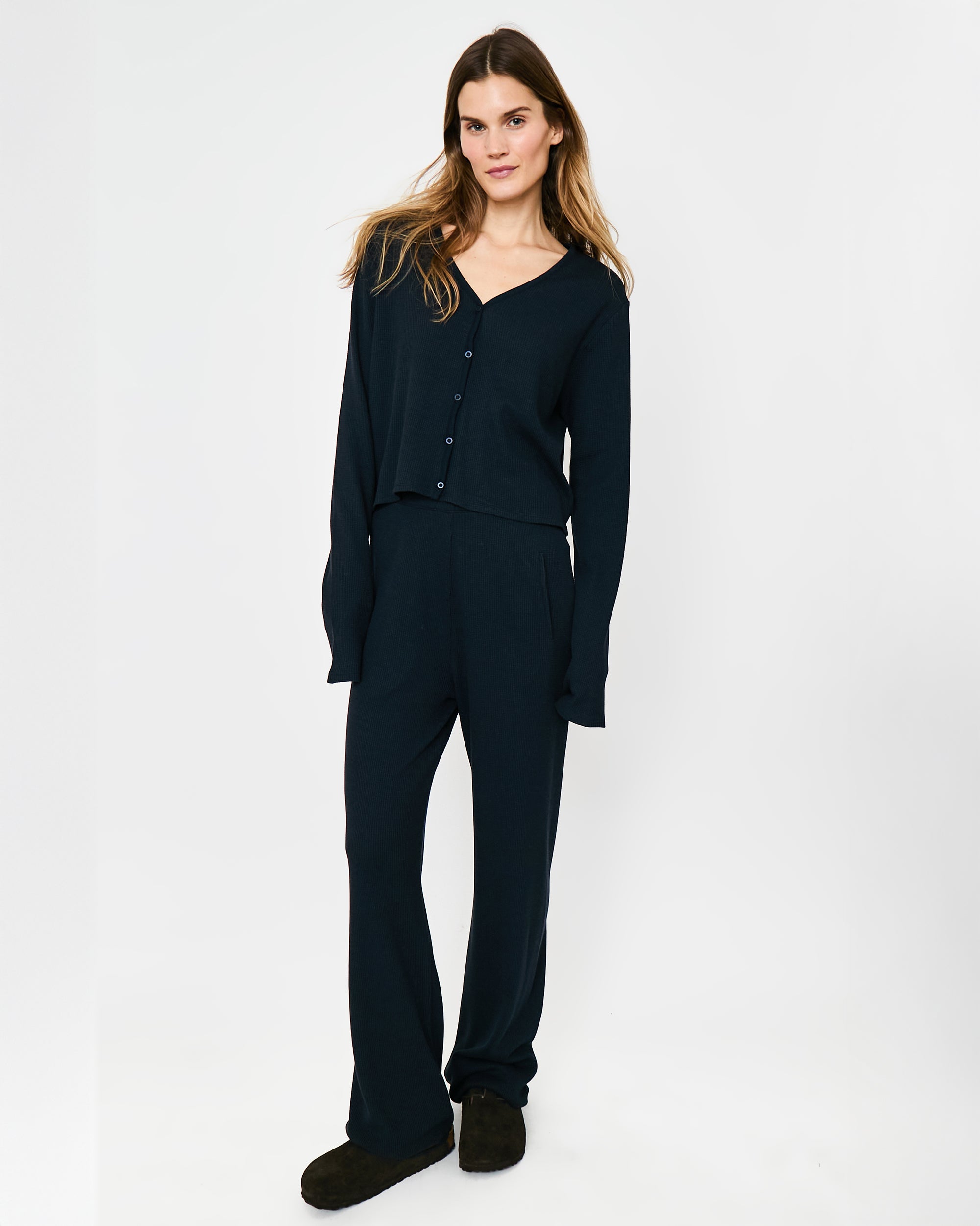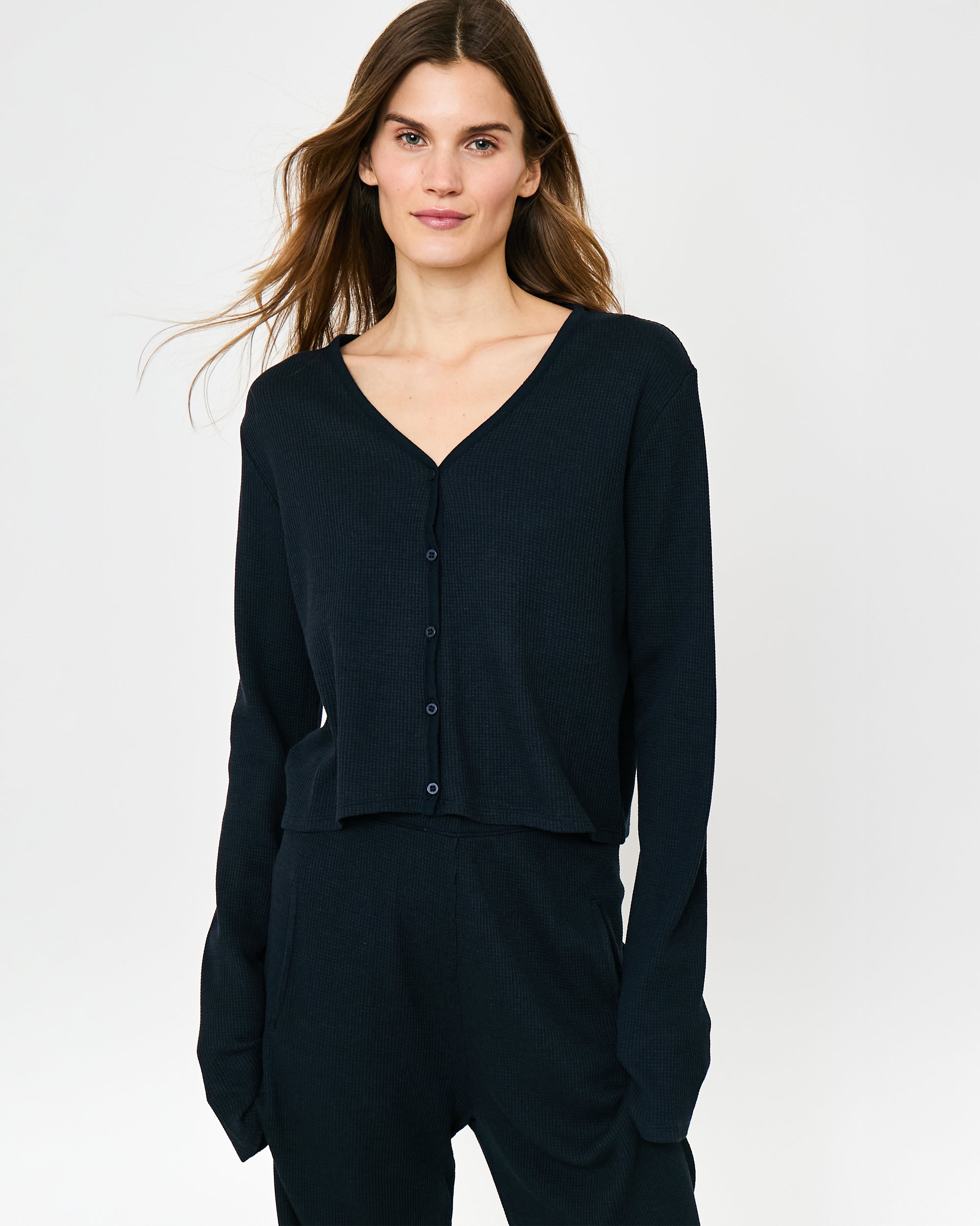 For days when you need to be (super) soft, the Sedona is a light-as-air V-neck with sweet little buttons and a mid-length fit. Equally perfect for long road trips and long movie marathons.